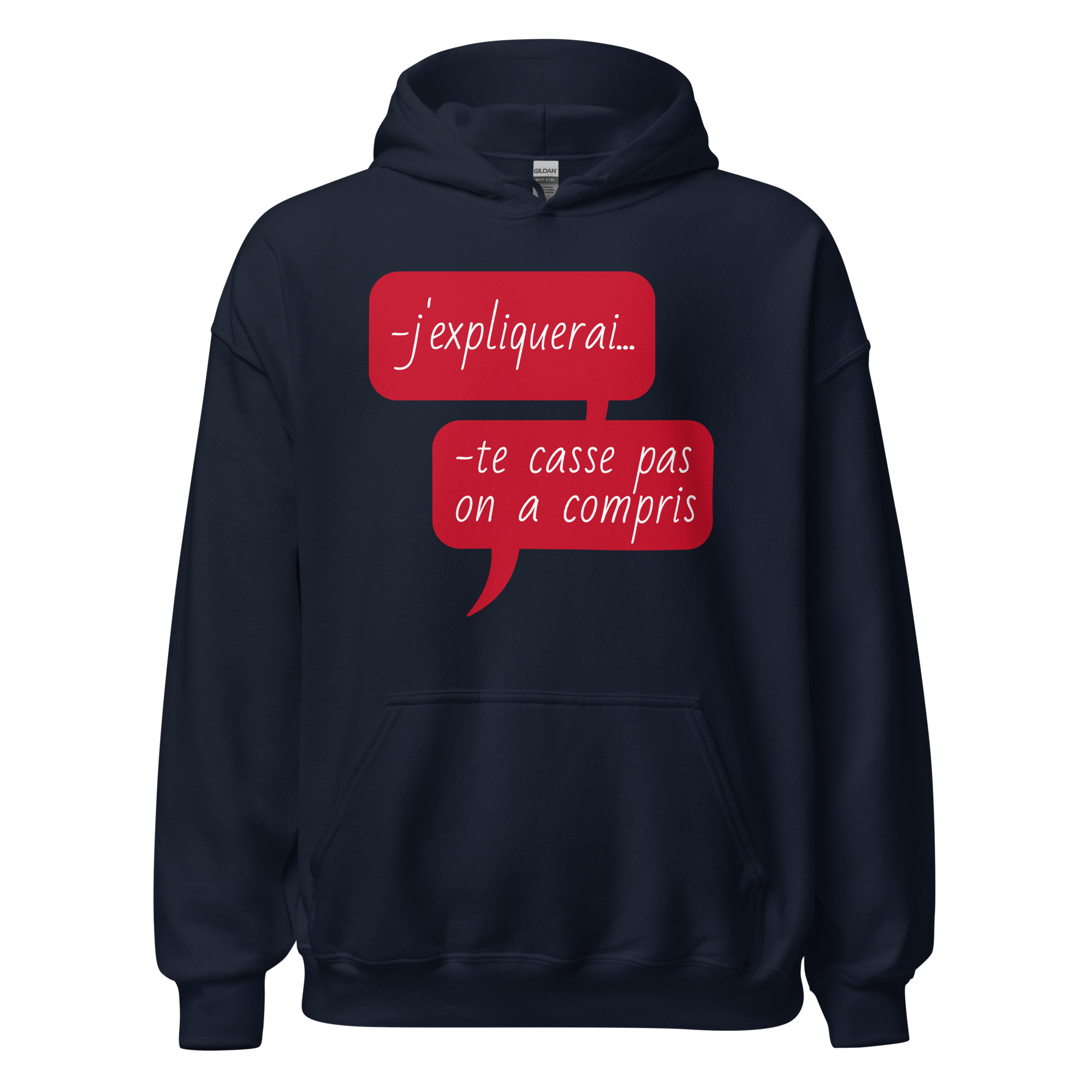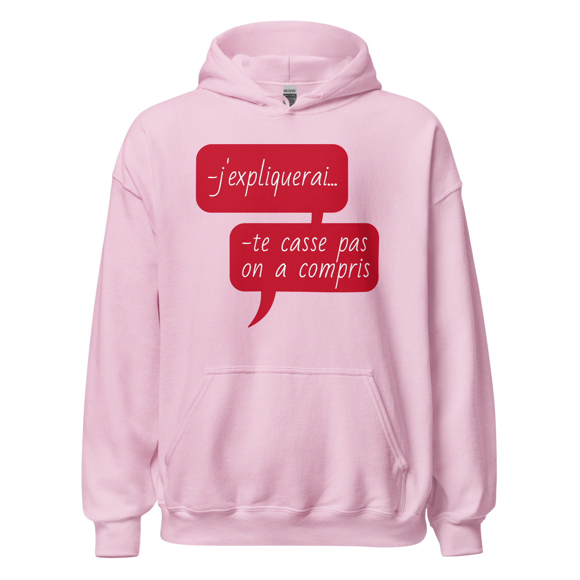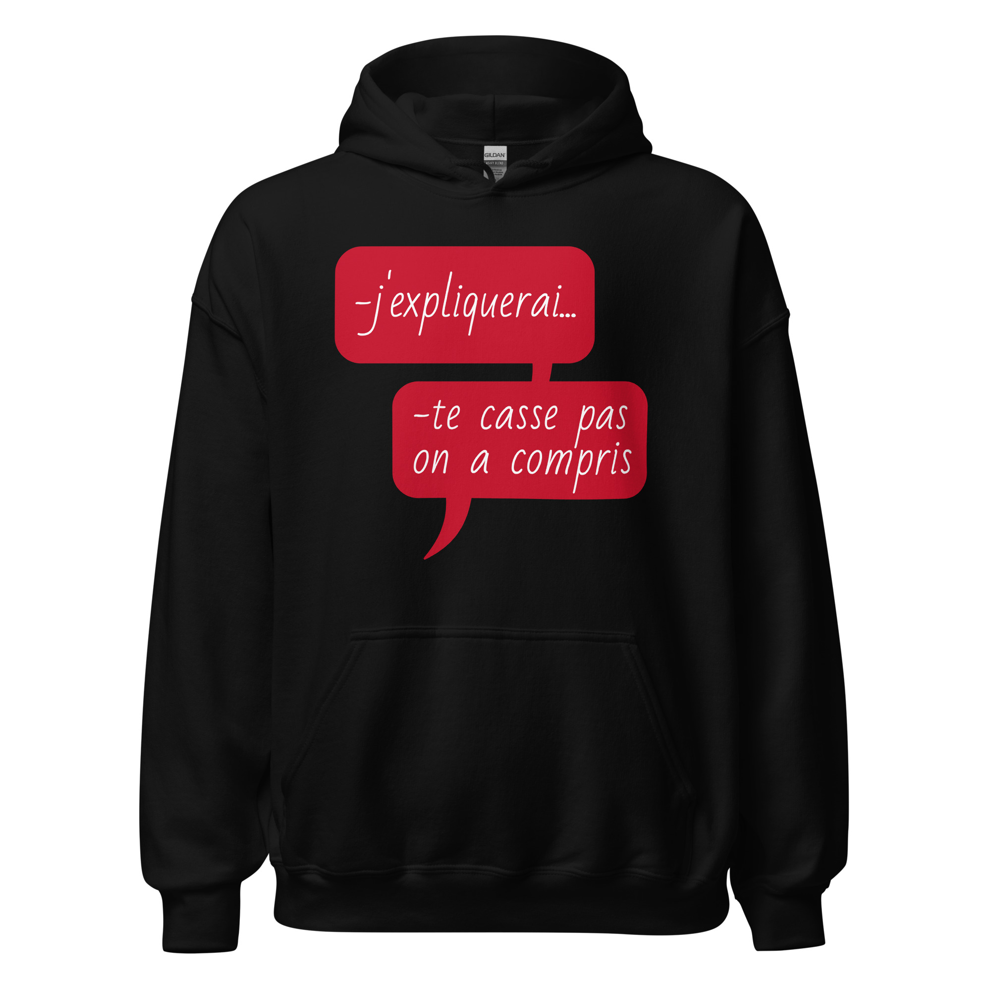 Sweat à capuche « J’expliquerai… te casse pas, on a compris. »