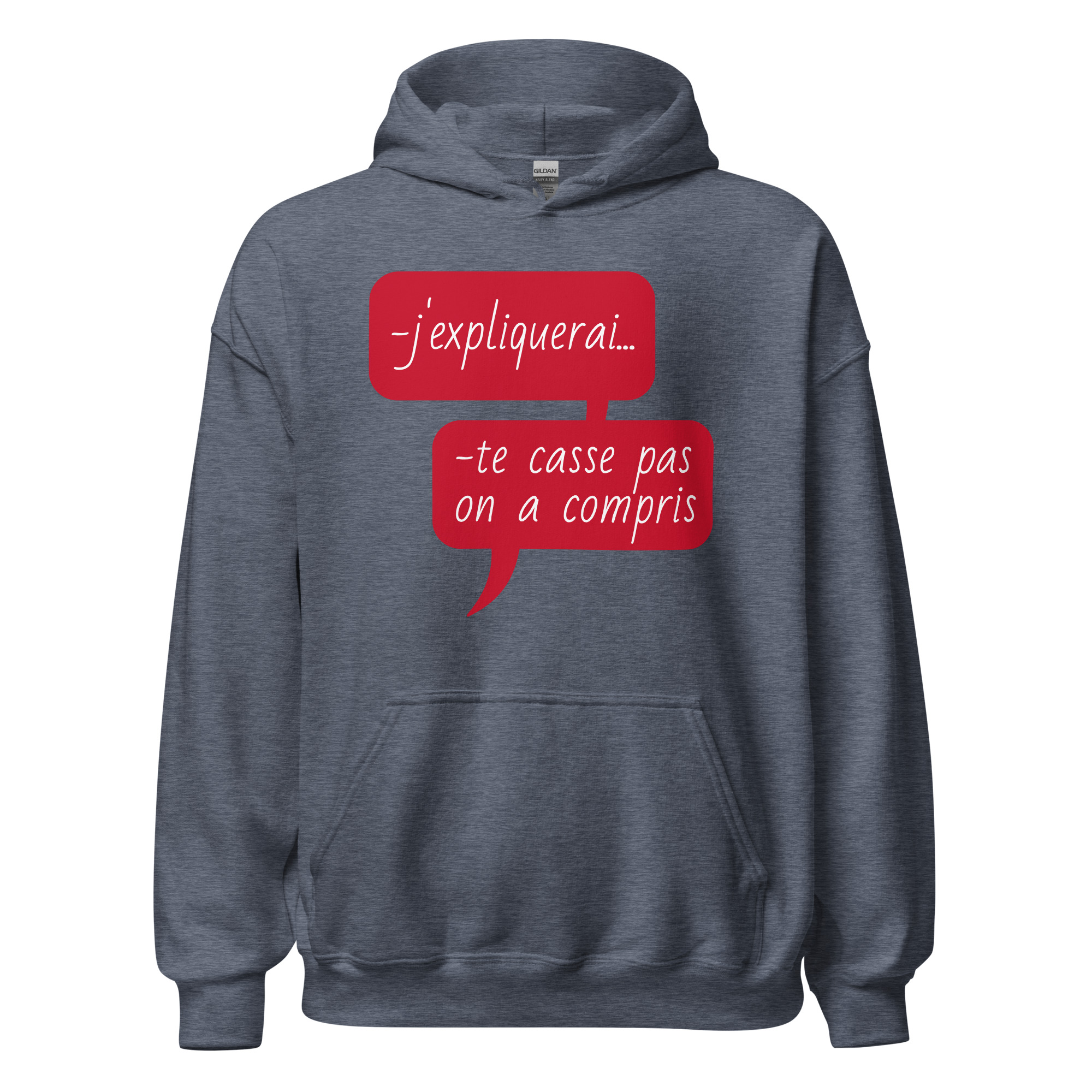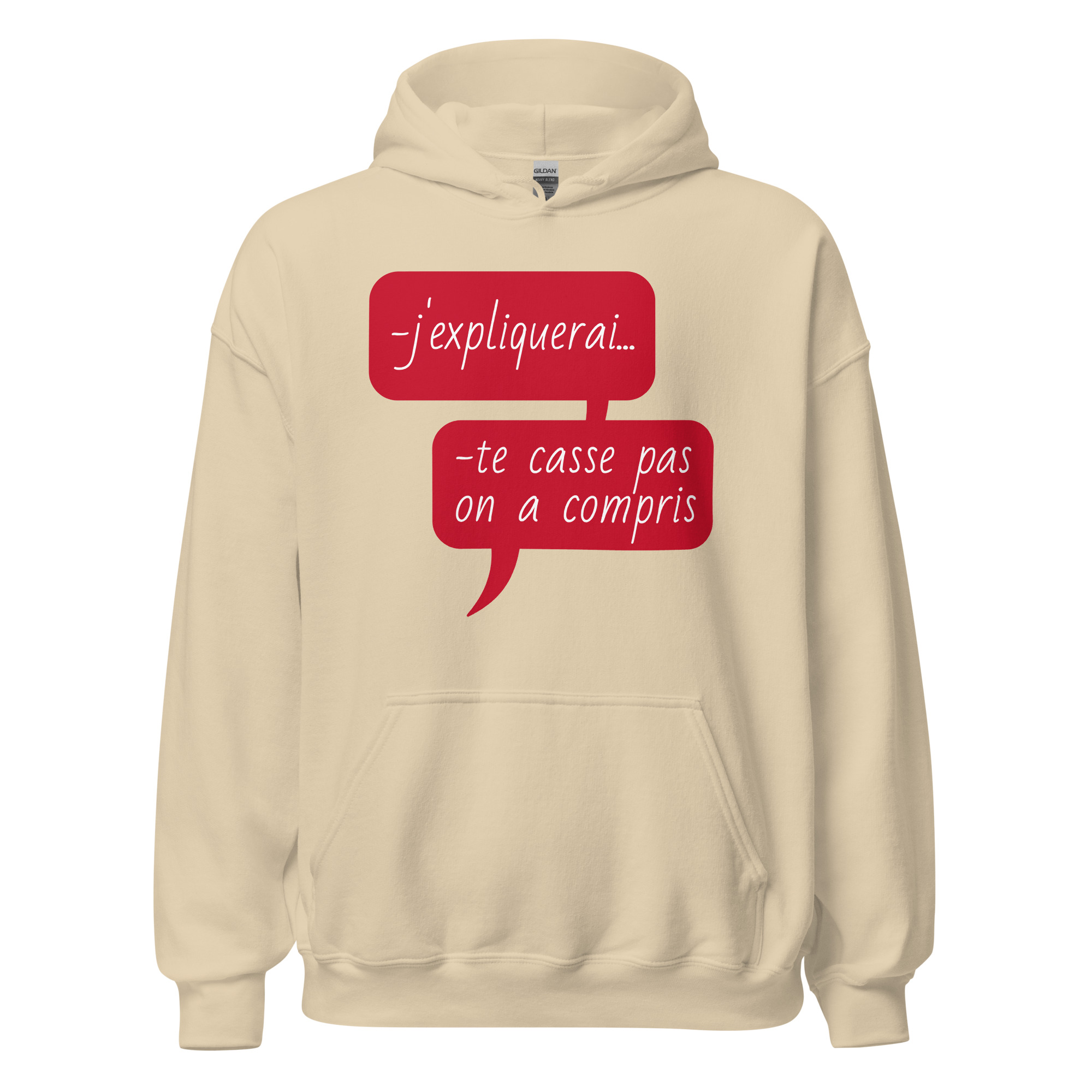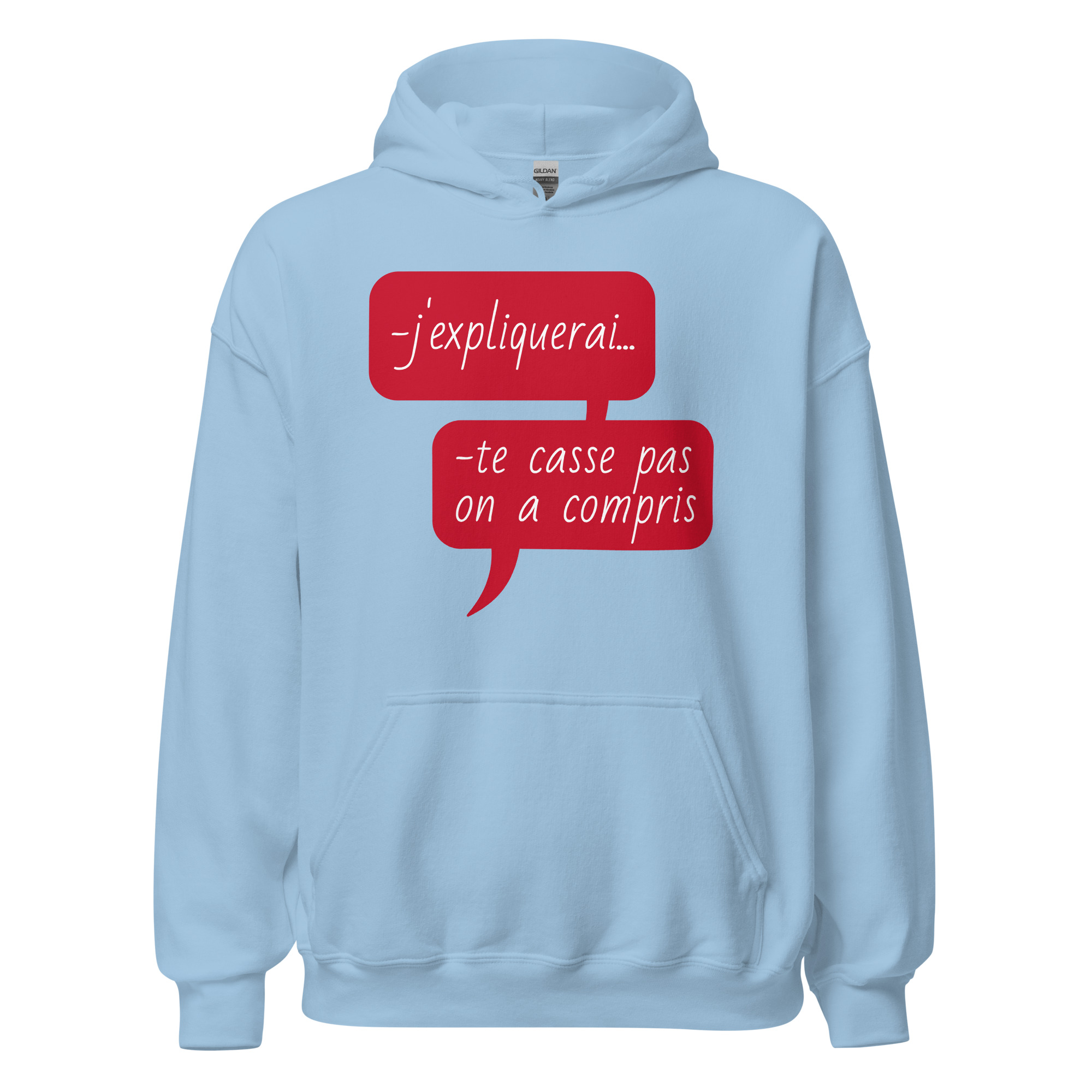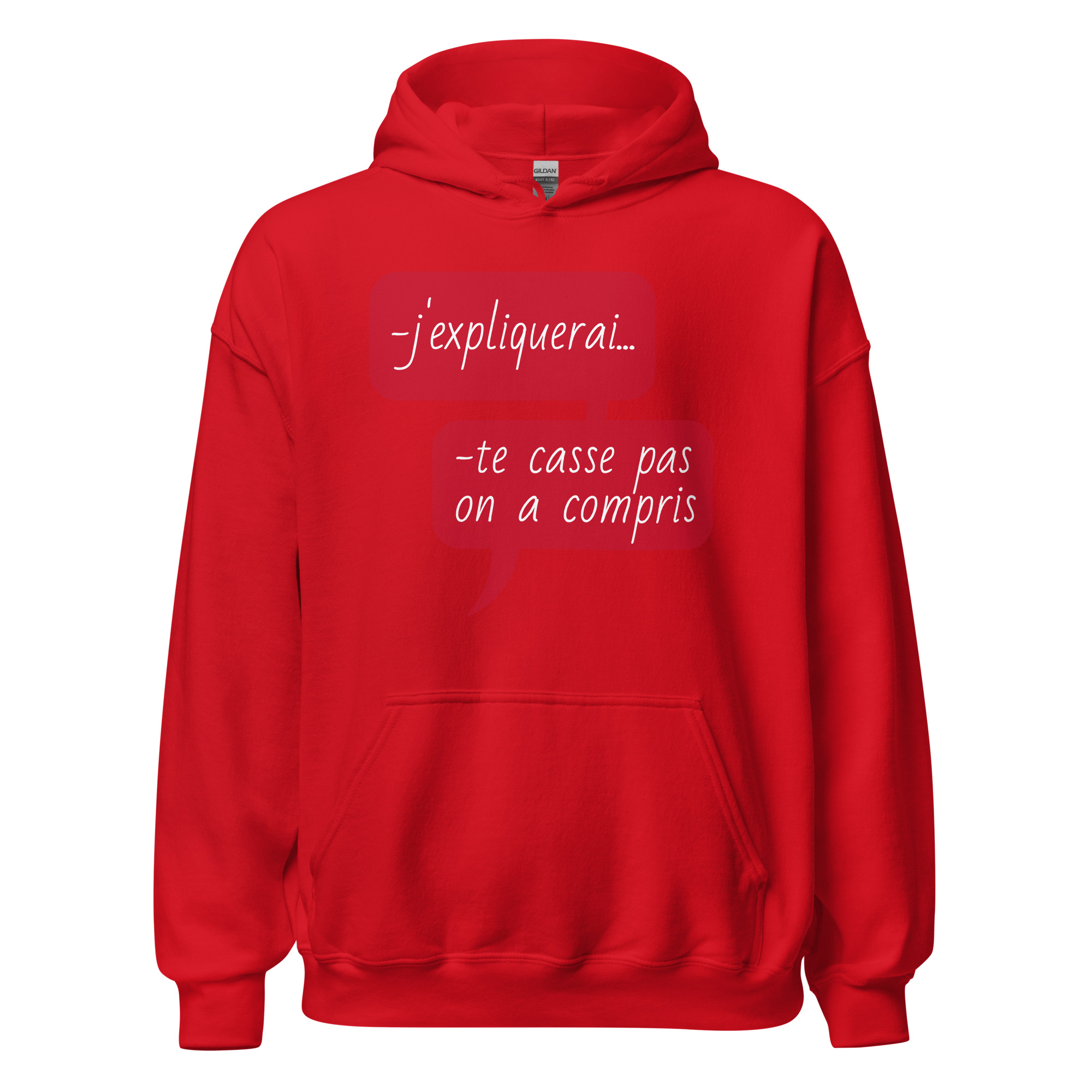 Sweat à capuche « J’expliquerai… te casse pas, on a compris. »