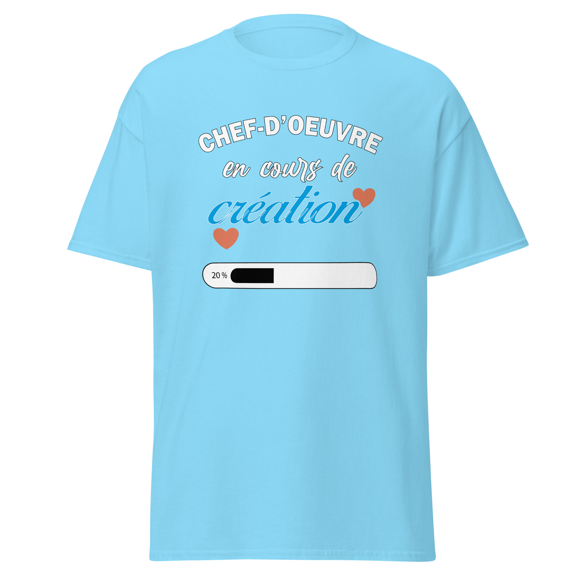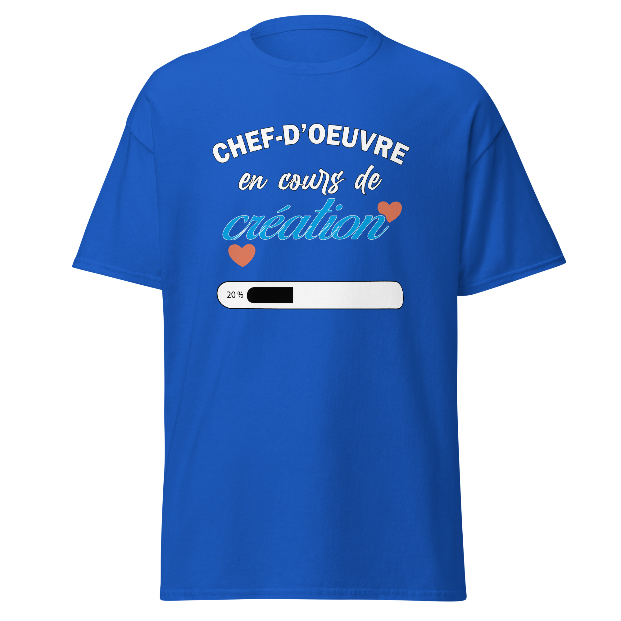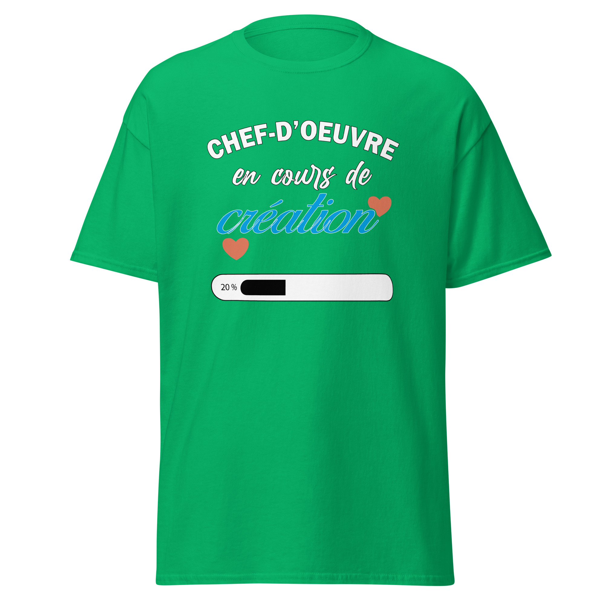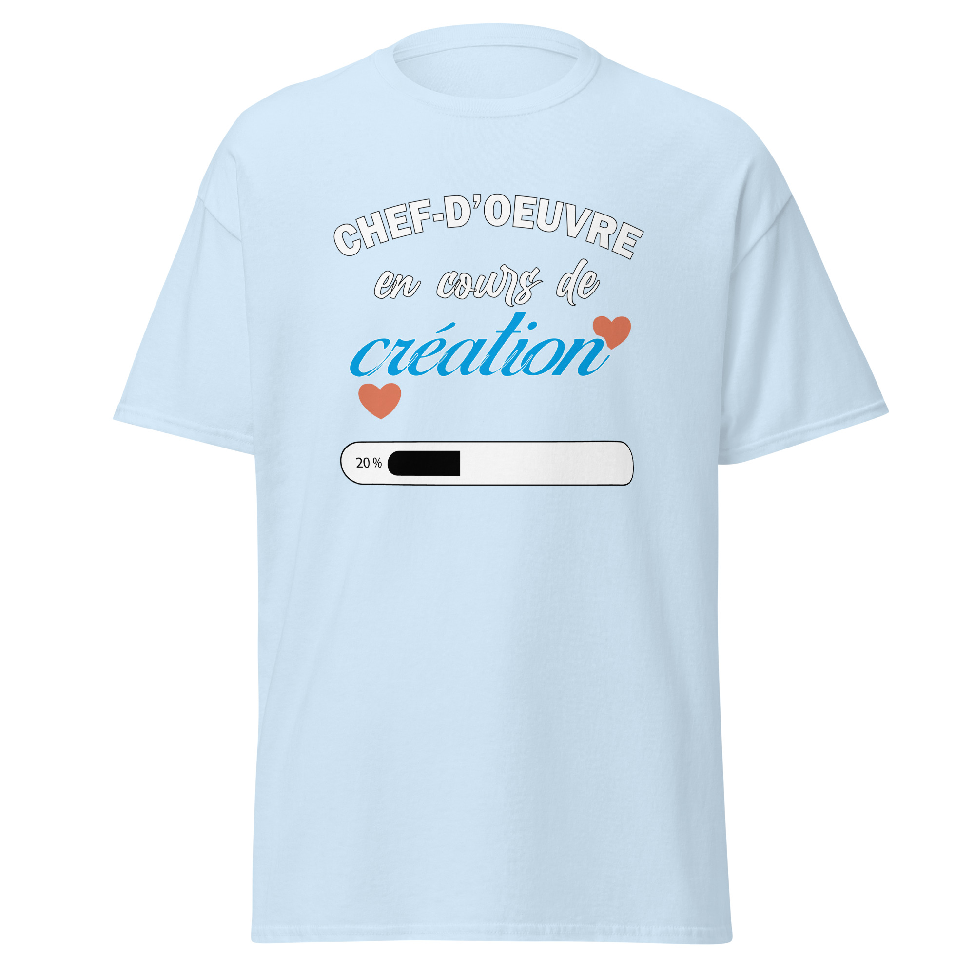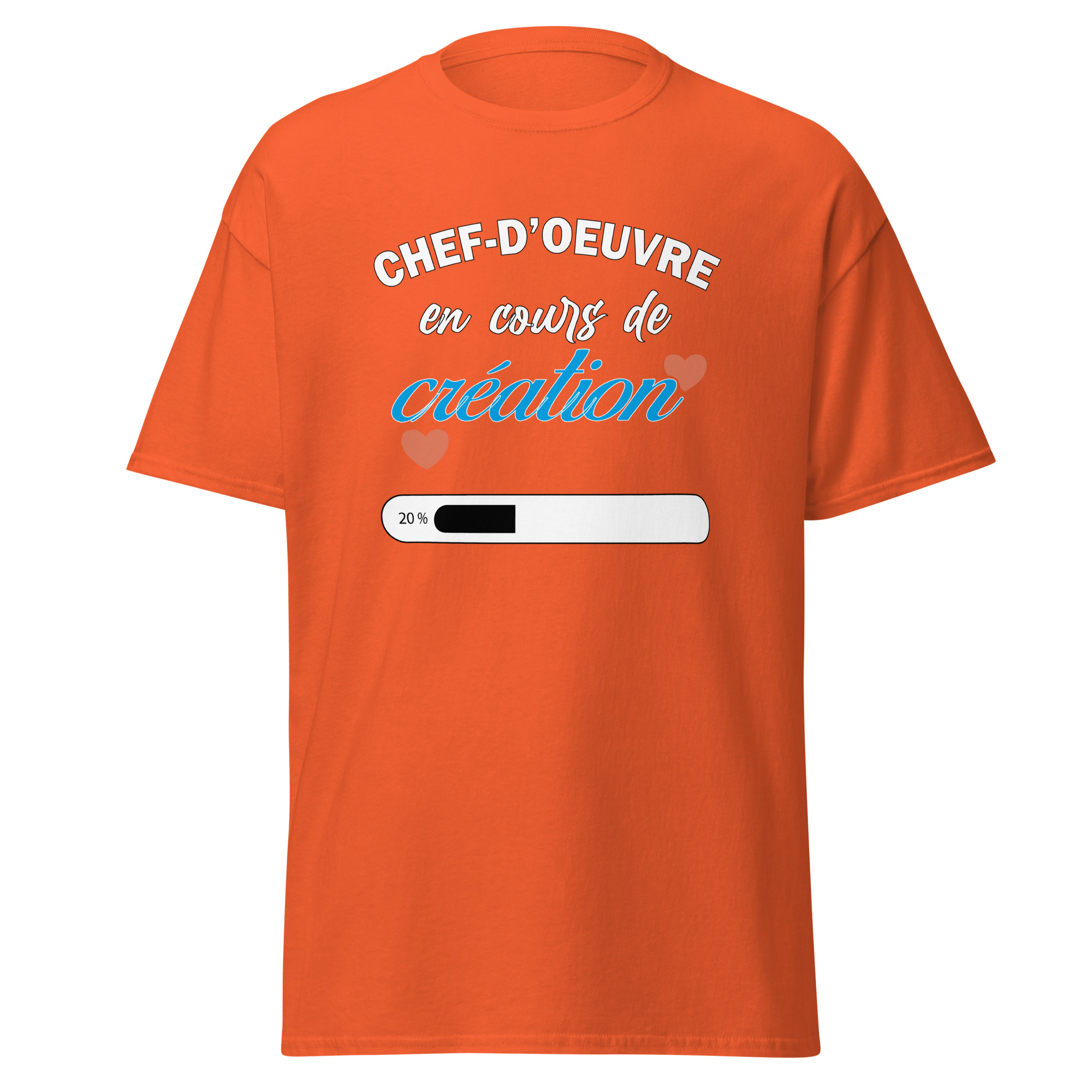 Annonce ta grossesse avec style et tendresse grâce à ce t-shirt unique ! Le message « Chef-d’œuvre en cours de création » révèle ton bonheur de manière créative, élégante et émouvante.